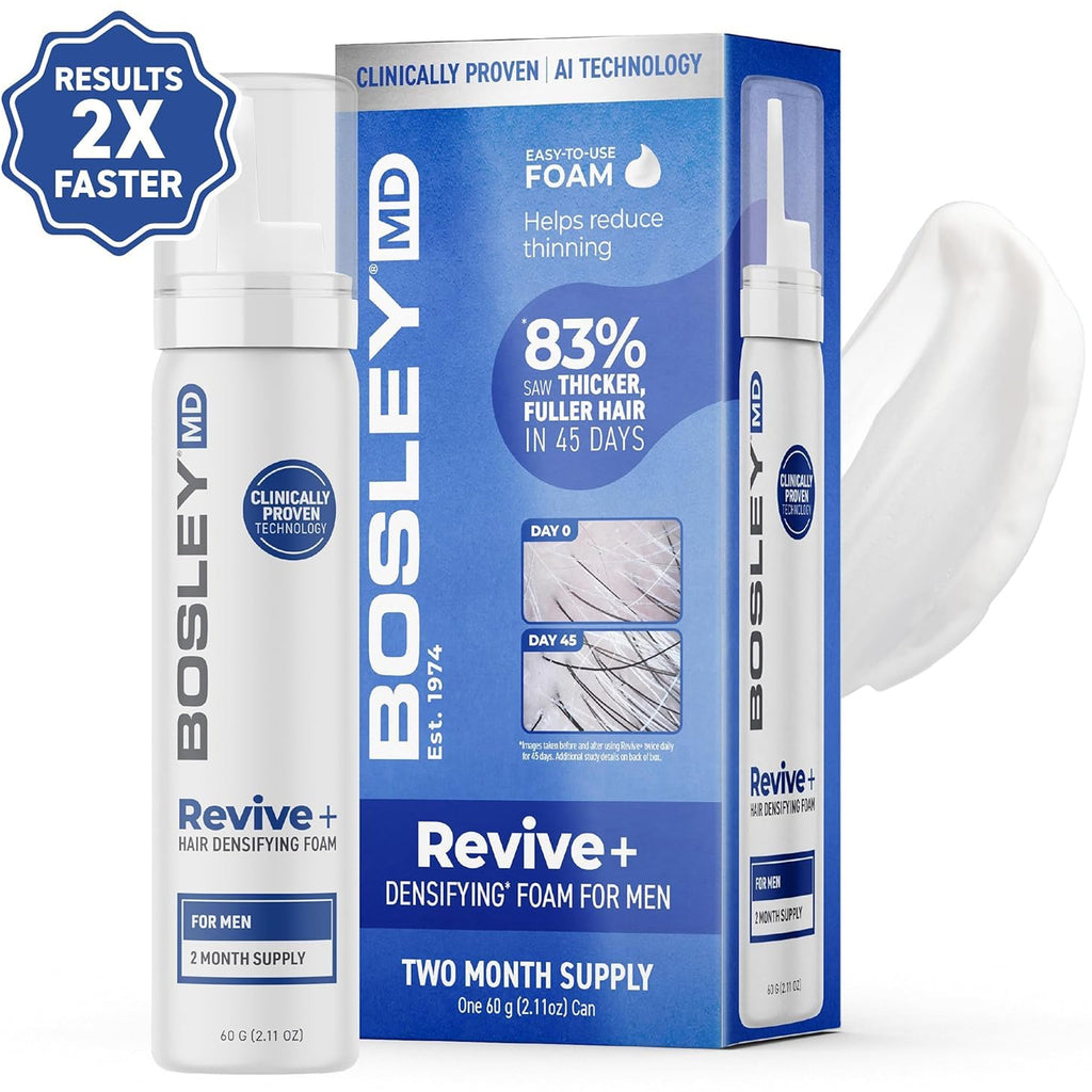 BosleyMD Men's Revive+ Densifying Treatment Foam – Hair Thinning Solution with Biotin & Pumpkin Seed Oil – 60-Day Supply
