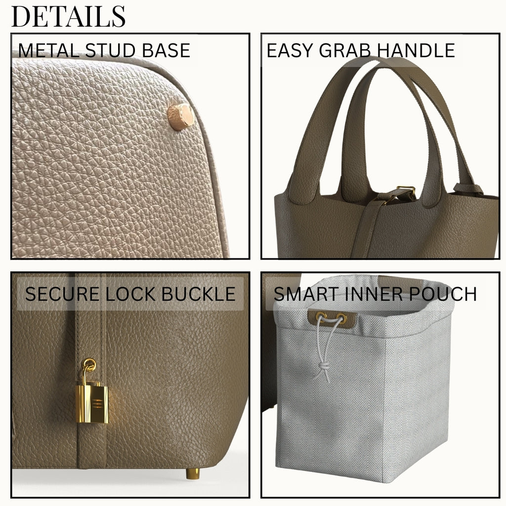 Leather Bucket Bag with Drawstring Pouch – Leather Satchel, Everyday Handbag with Mini Lock Design