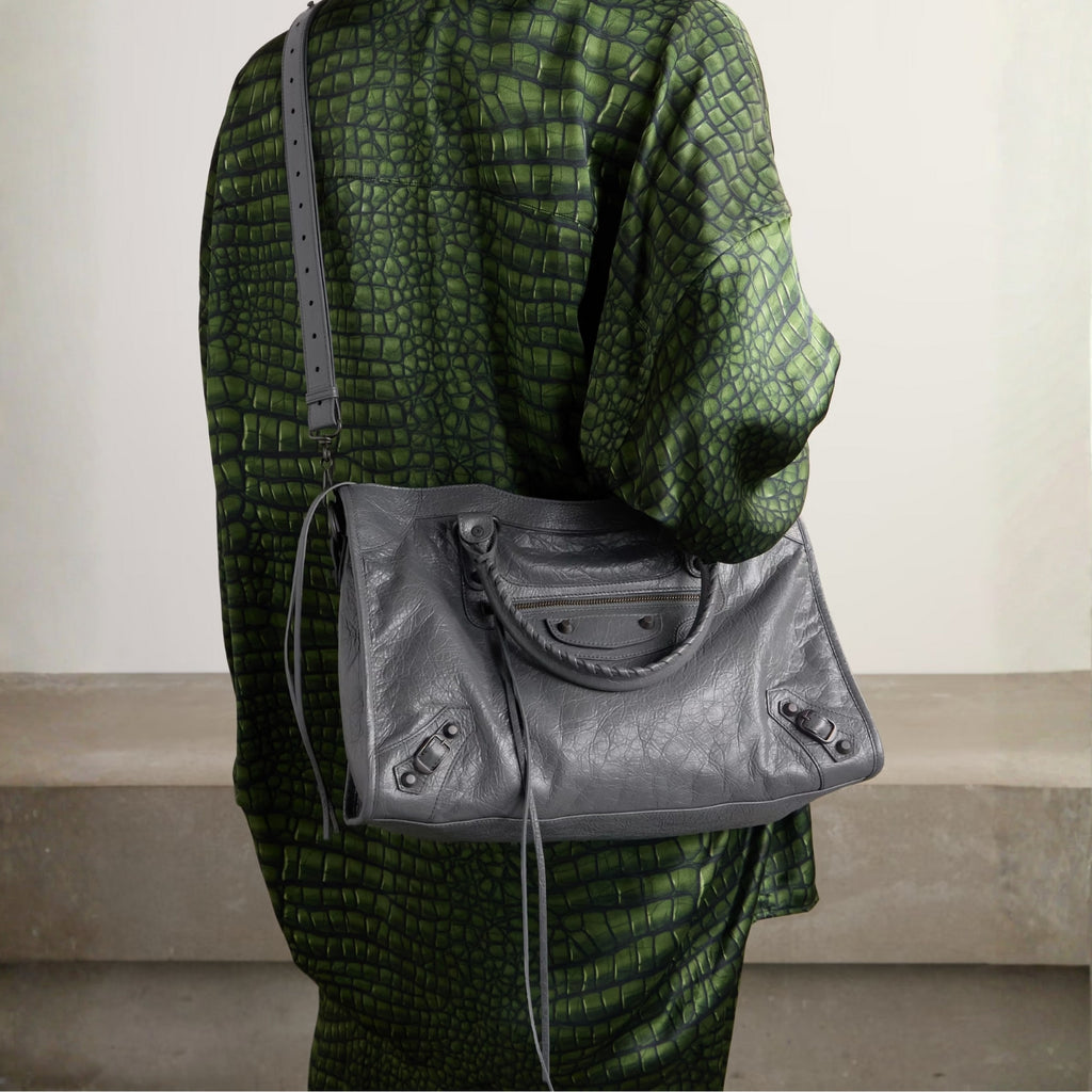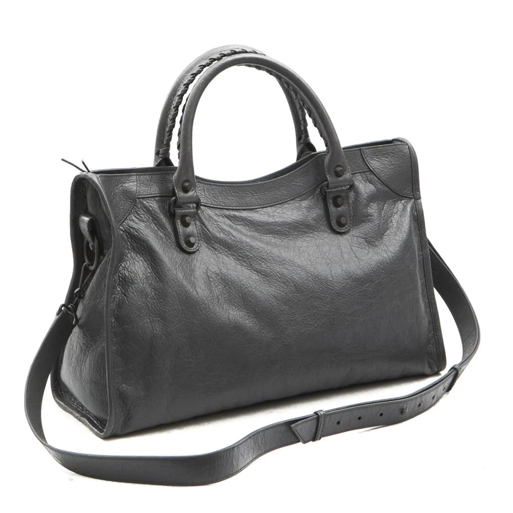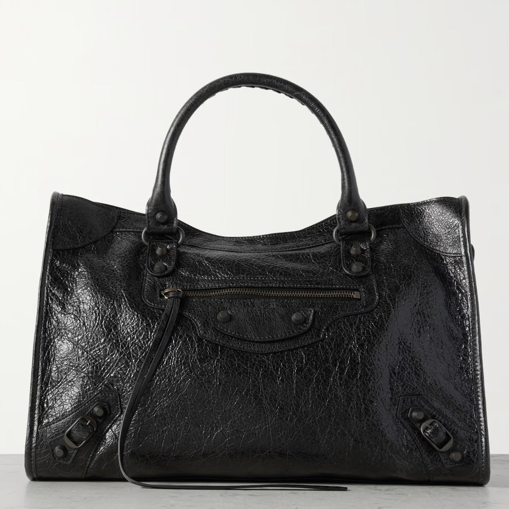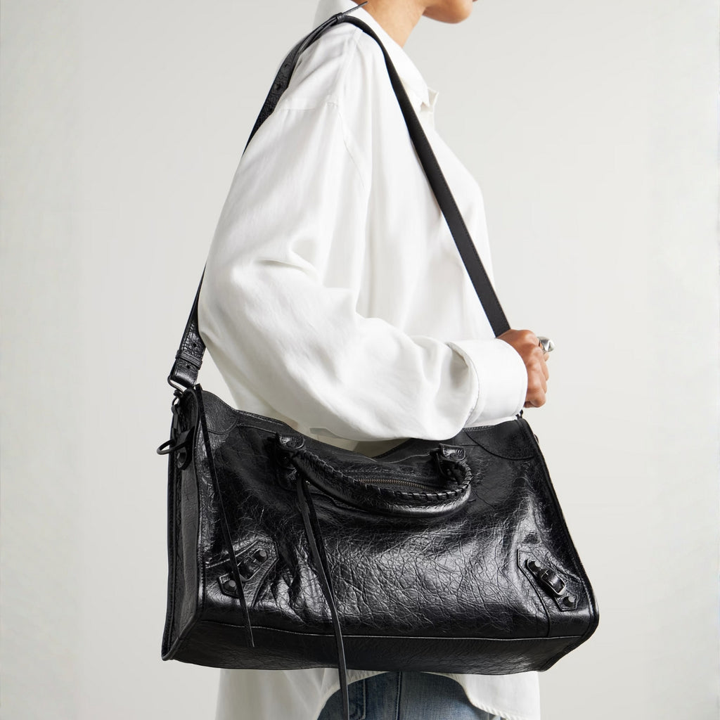 Medium City-Style Leather Shoulder Bag – Classic Moto Detail with Top Handle & Strap